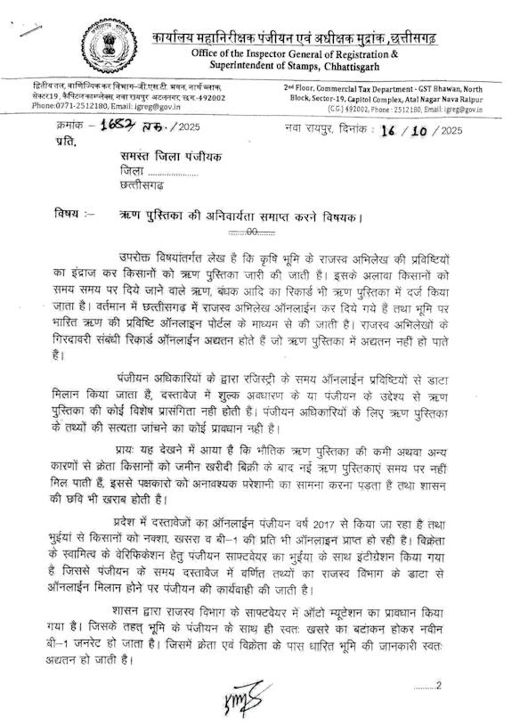 111 Post navigation Previous: साय सरकार का ऐतिहासिक फैसला… जमीन की खरीदी-बिक्री में ऋण पुस्तिका की अनिवार्यता की खत्म…