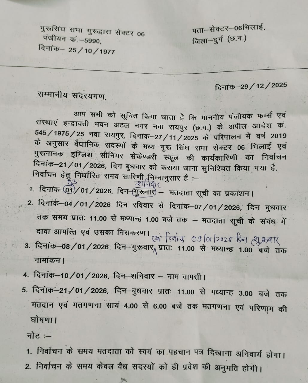 IMG-20260103-WA0028 Post navigation Previous: सेक्टर 6 गुरुद्वारा प्रबंध कार्यकारिणी के चुनाव का जिम्मा पूर्व अध्यक्ष कुलवंत को पंजीयक ने चुनाव कराने किया अधिकृत …