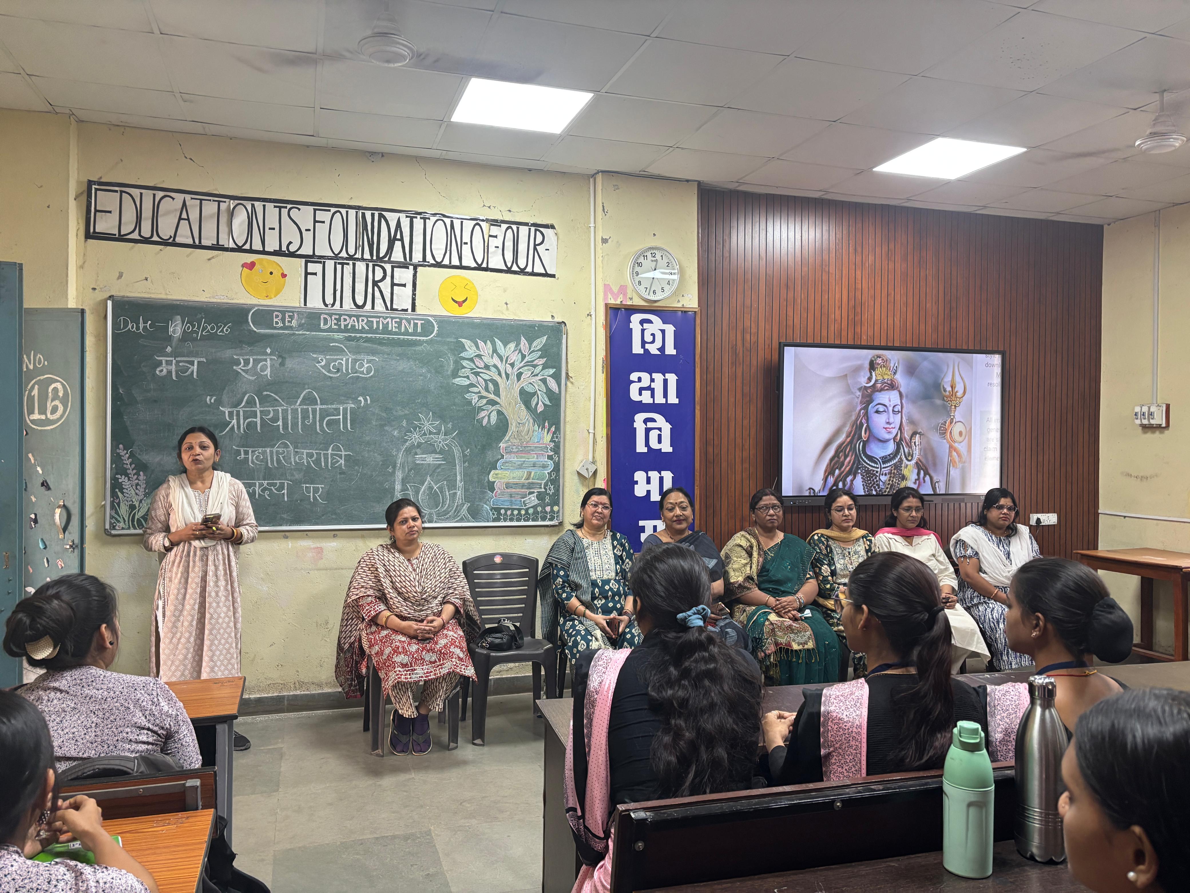 भिलाई महिला महाविद्यालय के शिक्षा विभाग में महाशिवरात्रि के पावन अवसर पर मंत्र एवं श्लोक प्रतियोगिता का आयोजन।