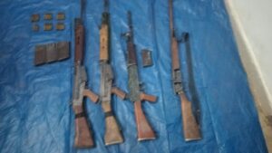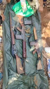 बडेगोबरा के सातमारी पहाडी क्षेत्र में माओवादियों द्वारा डम्प कर रखे 02 नग एसएलआर, 01 नग इंसास एवं 01 नग 12 बोर हथियार बरामद…