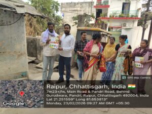 रायपुर – आज रायपुर नगर पालिक निगम की महापौर श्रीमती मीनल चौबे, स्वास्थ्य विभाग अध्यक्ष श्रीमती गायत्री सुनील चंद्राकर, आयुक्त श्री विश्वदीप के निर्देश पर स्वच्छ सर्वेक्षण अभियान 2025-26 के अंतर्गत रायपुर नगर पालिक निगम जोन क्रमांक 3 जोन अध्यक्ष श्रीमती साधना प्रमोद साहू, गुरू गोविन्द सिंह वार्ड क्रमांक 29 के पार्षद श्री कैलाश बेहरा के नेतृत्व में जोन 3 जोन कमिश्नर श्रीमती प्रीति सिंह के मार्गदर्शन और जोन स्वास्थ्य अधिकारी श्री पूरन कुमार ताण्डी की उपस्थिति में जोन क्षेत्र अंतर्गत गुरू गोविन्द सिंह वार्ड क्रमांक 29 अंतर्गत बेहरा कॉलोनी, प्रगति नगर,