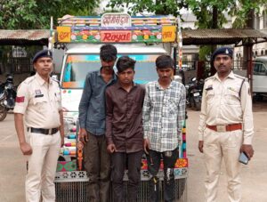 पुलिस टीम द्वारा आष्टा, जिला सीहोर (म.प्र.) में घेराबंदी कर संदिग्ध वाहन को पकड़ा गया, जिसमें तीन आरोपी सवार पाए गए। पूछताछ में आरोपियों ने छत्तीसगढ़ में चोरी करना स्वीकार किया।