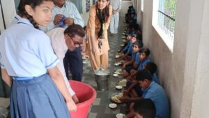 शिक्षिका ने पिताजी के जन्मदिन पर करवाया न्योता भोज…