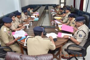 *श्रीमान वरिष्ठ पुलिस अधीक्षक दुर्ग श्री विजय अग्रवाल ( भा.पु.से.) व्दारा राजपत्रित पुलिस अधिकारियों के पास लंबित शिकायत जनता विरुद्ध एव पुलिस विरुद्ध, विभागीय जांच, प्राथमिक जाँच तथा दिनाँक 01/07/2024 के पूर्व के लंबित अपराध, चालान एवं धारा 173(8) जा.फौ. के लंबित अपराध, 60/90 दिवस वाले लंबित प्रकरणों का समय पर निराकरण, नवीन गुंडा/बदमाश एवं जिलाबदर के प्रकरण एवं उन पर नियंत्रण तथा दिनाँक 01/04/2025 के बाद एनडीपीएस के प्रकरण में आरोपियों द्वारा अर्जित संपत्ति को चिन्हित कर अटैच किए जाने हेतु प्रकरण तैयार कर सफेमा एक्ट की कार्यवाही हेतु भेजे गए प्रस्ताव एवं सेंट्रल स्टोर में एनडीपीएस में जप्त सामग्री जमा करने हेतु शेष मामलों की जानकारी, गुंडा बदमाश निगरानी बदमाश एवं जमीन संबंधी विवाद काउंटर अपराध में कितने में बाउंड ओव्हर की कार्रवाई की गई तथा लंबित विधानसभा प्रश्न के अद्यतन स्थिति के संबंध में बिंदुवार चर्चा किया गया तथा लम्बित प्रकरणों का शीघ्र निराकरण किए जाने हेतु निर्देशित किया गया।*