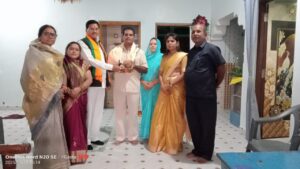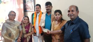 नगर पालिका परिषद भिलाई–चरोदा की पूर्व अध्यक्ष – *श्रीमती सीता साहू* ने राधा स्वामी सत्संग सभा की रागी– *श्रीमती गोयल जी,* श्री राधा माधव कश्न मंदिर के पुजारी *पं. श्री अजय शरण देवाचार्य जी* त्रिसंगम सतनाम धाम उमदा के पुजारी व अध्यक्ष– *श्री इतवारी राम मधुकर जी,* सतनाम समाज के भंडारी – *श्री राजा राम डहरिया जी* का मुंह मीठा कर शाल व श्रीफल भेंट कर किए।