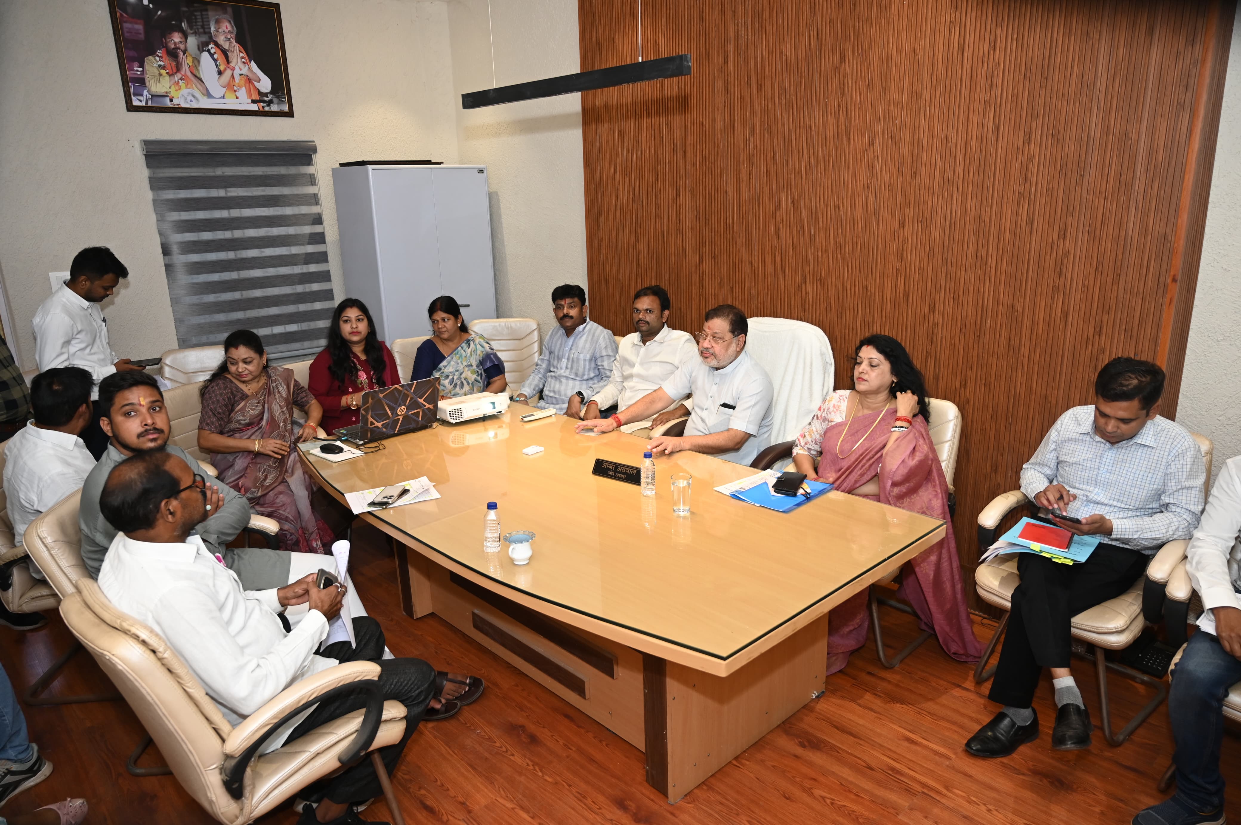 रायपुर दक्षिण विधायक सुनील सोनी द्वारा निगम जोन 5 कार्यालय में ली गयी समीक्षा बैठक में नगर निगम जोन 5 जोन अध्यक्ष श्री अंबर अग्रवाल, एमआईसी सदस्य श्रीमती सरिता आकाश दुबे, श्रीमती सुमन अशोक पाण्डेय, पार्षद श्री बब्बी सोनकर, श्रीमती ममता सोनू तिवारी, श्रीमती दुर्गा यादराम साहू, श्री आशु चंद्रवंशी सहित जोन 5 जोन कमिश्नर श्री खीरसागर नायक, कार्यपालन अभियंता श्री लाल महेन्द्र प्रताप सिंह, सहायक अभियंता श्री नागेश रामटेके, जोन स्वास्थ्य अधिकारी श्री संदीप वर्मा सहित अन्य सम्बंधित निगम कर्मचारियों की उपस्थिति रही.