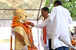 रायपुर – आज छत्तीसगढ़ राज्य के प्रणेता प्रथम दृष्टा डॉक्टर खूबचंद बघेल को उनकी 125वीं जयन्ती स्वाभिमान दिवस पर नमन करने राजधानी शहर के नवीन मार्केट फूल चौक स्थित मूर्ति स्थल पर रखे गए संक्षिप्त पुष्पांजलि आयोजन में पहुंचकर रायपुर नगर पालिक निगम संस्कृति विभाग के अध्यक्ष श्री अमर गिदवानी, एमआईसी सदस्य श्री अवतार भारती बागल, जोन 4 जोन अध्यक्ष श्री मुरली शर्मा,