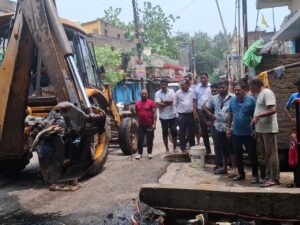 रायपुर– आज राजधानी शहर रायपुर में हुई तेज बारिश के दौरान नगर निगम रायपुर के जोन क्रमांक 4 के अतर्गत पंडित भगवतीचरण शुक्ल वार्ड क्रमांक 57 के क्षेत्र में रतन पैलेस के पीछे राजेन्द्र नगर का नाला ओव्हर फ्लो होने एवं उसमें भारी मात्रा में कचरा होने से बस्ती में जलभराव की समस्या अचानक आ गई,