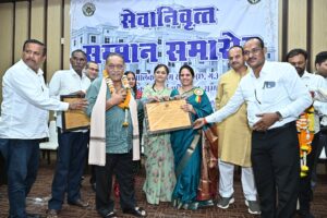 रायपुर – आज रायपुर नगर पालिक निगम अधिकारी कर्मचारी एकता संघ के तत्वावधान में नगर निगम मुख्यालय महात्मा गांधी सदन के चतुर्थ तल निगम सामान्य सभा सभागार में रखे गये आयोजन में रायपुर नगर निगम से जनवरी से जून 2025 के मध्य सेवानिवृत्त 55 निगम अधिकारियों एवं कर्मचारियों की सेवाओ का सामूहिक सम्मान महापौर श्रीमती मीनल चौबे के मुख्य आतिथ्य, सभापति श्री सूर्यकांत राठौड़ की अध्यक्षता, आयुक्त श्री विश्वदीप, सामान्य प्रशासन एवं विधि विधायी कार्य विभाग अध्यक्ष डॉ. अनामिका सिंह, जोन 5 जोन अध्यक्ष श्री अम्बर अग्रवाल के विशेष आतिथ्य और मंच पर अपर आयुक्त श्रीमती कृष्णा खटीक, श्री विनोद पाण्डेय, जोन 8 कमिश्नर श्रीमती राजेश्वरी पटेल, कर्मचारी संघ के पूर्व अध्यक्ष श्री अरूण दुबे, नगर निगम अधिकारी कर्मचारी एकता संघ अध्यक्ष श्री प्रमोद जाधव की उपस्थिति में किया गया। सेवानिवृत्त निगम अधिकारियों, कर्मचारियों को अधिकारी कर्मचारी एकता संघ द्वारा श्रीफल शॉल, स्मृति चिन्ह प्रदत्त कर पुष्पहार पहनाकर उनकी निगम को दी सेवाओं का सम्मान किया गया।