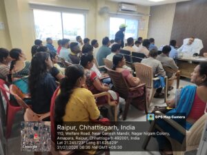 रायपुर– रायपुर नगर पालिक निगम की महापौर श्रीमती मीनल चौबे, स्वास्थ्य विभाग अध्यक्ष श्रीमती गायत्री सुनील चंद्राकर, आयुक्त श्री विश्वदीप के निर्देश पर नगर पालिक निगम अपर आयुक्त स्वास्थ्य श्री विनोद पाण्डेय नगर निगम के जोन कार्यालयों में जाकर जोन कमिश्नर, स्वच्छ भारत मिशन के नोडल अधिकारी कार्यपालन अभियंता श्री रघुमणि प्रधान, जोन स्वास्थ्य अधिकारी, स्वच्छता निरीक्षकों, वार्ड सफाई सुपरवाइजरों, रामकी कम्पनी के प्रतिनिधियों की उपस्थिति में जोन क्षेत्र अंतर्गत वार्डों के सफाई कार्य की समीक्षा कर आवश्यक निर्देश जोन कमिश्नरों और जोन स्वास्थ्य अधिकारियों, रामकी कम्पनी के प्रतिनिधियों को दे रहे हैँ.