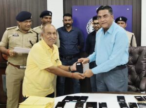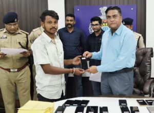 जिले में गुम मोबाईल के संबंध में लगातार मोबाईल गुमने की रिपोर्ट प्रार्थियो द्वारा थानो में दर्ज कराई जा रही है। जिससे वरिष्ठ पुलिस अधीक्षक दुर्ग विजय अग्रवाल ने गुम मोबाईलो की पतासाजी कर प्रार्थियो के सुपुर्द करने हेतु निर्देश प्राप्त हुए थे। जिसके परिपालन में एन्टी क्राईम एण्ड सायबर यूनिट एवं जिला दुर्ग के थाना प्प्रभारियों के नेतृत्व में एन्टी क्राईम एण्ड सायबर यूनिट एवं थाने की टीम को गुम हुये मोबाईलों को खोजकर संबंधित मोबाईल स्वामियों को वितरण करने हेतु लगाया गया। वरिष्ठ अधिकारियों के निर्देशानुसार वर्ष 2024-2025 के गुमे हुये मोबाईलों से संबंधित आवेदन पत्रों के आधार पर अभियान चला कर मेहनत एवं लगन से एन्टी क्राईम एण्ड सायबर यूनिट टीम द्वारा दुर्ग, भिलाई, राजनांदगाँव, बालोद, बेमेतरा एवं रायपुर क्षेत्रों में चल रहे कुल 201 नग विभिन्न कंपनियों के मोबाईलों जुमला कीमती तकरीबन 41 लाख रूपये का बरामद किया गया।