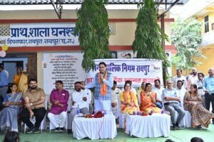 रायपुर – आज प्रदेश के पूर्व केबिनेट मन्त्री रायपुर पश्चिम विधायक श्री राजेश मूणत और रायपुर नगर पालिक निगम की महापौर श्रीमती मीनल चौबे ने नगर निगम जोन 8 जोन अध्यक्ष श्री प्रीतम सिंह ठाकुर और संत रविदास वार्ड क्रमांक 70 के पार्षद श्री अर्जुन यादव, शासकीय प्राथमिक शाला डिपरापारा की प्राचार्य श्रीमती देवांगन, जोन 8 जोन कमिश्नर श्रीमती राजेश्वरी पटेल, कार्यपालन अभियंता श्री अतुल चोपड़ा, शिक्षक – शिक्षिकाओं, स्कूल के विद्यार्थियों,