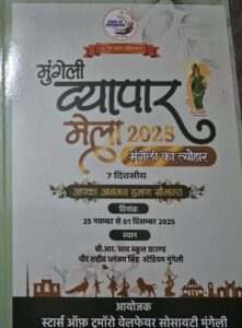 यह कार्यक्रम ‘मुंगेली गोट टैलेंट 2025’ के अंतर्गत संपन्न होगा । व्यापार मेला को सफल बनाने में सँस्था के संयोजक रामपाल सिंह, सहसयोंजक रामशरण यादव, अध्यक्ष महावीर सिंह, सचिव विनोद यादव, कोषाध्यक्ष धनराज परिहार, दिनेश गोयल, सतपाल मक्कड़, गोखलेश सिंह, विकास जैन, देवेंद्र परिहार, दीपक जैन, रणवीर सिंह, श्रेणिक पारेख, नीलेश केशरवानी, आशीष सोनी, अनुराग सिंह, सूरज मंगलानी, गिरीश सुथार, सुनील वाधवानी, अनीश जैन, देवशंकर श्रीवास्तव, गौरव जैन, कोमल चौबे, नागेश साहू, राहुल मल्लाह, पवन यादव, आर्या सिंह, मुकेश पांडेय, वासु पांडेय, रवि साहू, धीरज जैन, आशीष सिंह, पप्पू शर्मा, राहुल साहू, श्रेयांश बैद, वैभव ताम्रकार, रॉकी सलूजा, देवेंद्र सिंह, अजय चंद्राकर, चित्रकान्त सिंह, संतोष जांगड़े, श्रीओम सिंह, दिलबाग सिंह, रघुराज सिंह, सुरेश यादव, अमित साहू, परमेश्वर देवांगन सहित सँस्था के सभी सदस्य सक्रियता के साथ लगे हुवे है।