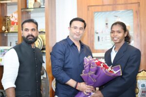 ढ़ाका, श्रीलंका में आयोजित द्वितीय महिला कबड्डी विश्व कप 2025 की विश्व विजयी भारतीय कबड्डी टीम की स्टार खिलाड़ी एवं छत्तीसगढ़ की गौरवशाली बेटी #संजू_देवी का सम्मान एच.टी.सी. कार्यालय में छत्तीसगढ़ कबड्डी संघ के संरक्षक श्री इंद्रजीत सिंह ‘छोटू’ द्वारा किया गया।