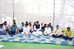 दुर्ग।तयशुदा कार्यक्रम के अनुसार एवं पूर्व निर्धारित कार्यक्रम के तहत युवा विधायक देवेंद्र यादव सुबह 9:30 बजे हिंदी भवन के सामने एक दिवसीय उपवास कार्यक्रम में अपने समर्थकों के साथ धरने पर बैठ गए,धरना शांति प्रिय ढंग से सम्पन्न होगा।