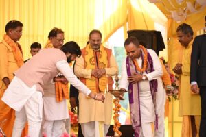 हसौद/सक्ती/रायपुर। मां महामाया नगरी हसौद में अखिल भारतीय विश्व गायत्री परिवार द्वारा आयोजित 251 कुण्डीय विराट गायत्री महायज्ञ में पूरे प्रदेश का आध्यात्मिक वातावरण और अधिक प्रखर हुआ। इस पावन आयोजन में छत्तीसगढ़ शासन के तकनीकी शिक्षा, कौशल विकास एवं रोजगार मंत्री तथा सक्ती जिला प्रभारी मंत्री माननीय गुरु खुशवंत साहेब जी ने विशेष अतिथि के रूप में अपनी गरिमामयी उपस्थिति दर्ज कराते हुए कार्यक्रम की आत्मा को केंद्र से जोड़ दिया।
