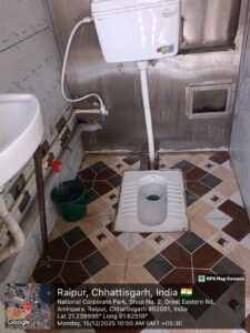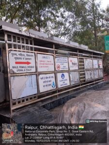 रायपुर – रायपुर स्मार्ट सिटी लिमिटेड द्वारा निर्मित 6 ई-टॉयलेट (इलेक्ट्रानिक क्वाइन आपरेटेड) को नगर निगम को बंद अवस्था में हस्तांतरित किया गया था। उपरोक्त 6 स्थानों के ई-टॉयलेट को मेन्युअली ऑपरेटेड हेतु मरम्मत व संधारण संचालन कार्य हेतु ईओआई के माध्यम से संस्था नियुक्त कर मरम्मत कार्य कराया गया,