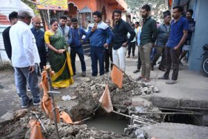 रायपुर – आज नगर पालिक निगम रायपुर की महापौर श्रीमती मीनल चौबे नगर निगम रायपुर के महर्षि वाल्मीकि वार्ड क्षेत्र अंतर्गत सेल्स टेक्स कॉलोनी में रहवासी नागरिकों के घरों में नलों से गन्दा पानी आने की शिकायत मिलते ही तत्काल सम्बंधित क्षेत्र पहुँचीं और वहाँ नगर निगम ज़ल कार्य विभाग और नगर निगम जोन 3 और जोन 9 जल विभाग की टीमों द्वारा पाइप लाईन में आये लीकेज के ट्रेस होने के बाद जारी सुधार कार्य की प्रगति प्रत्यक्ष निरीक्षण कर उसकी स्थल समीक्षा कर अधिकारियों को अतिशीघ्र सुधार कार्य को तेजी से गतिमान करके पूर्ण करवाकर अगले 24 घण्टे के भीतर हर हाल में सर्वोच्च प्राथमिकता से सेल्स टैक्स कॉलोनी के रहवासी नागरिकों के सभी घरों में नलों से स्वच्छ पेयजल उपलब्ध करवाया जाना सुनिश्चित करने निर्देश दिए.