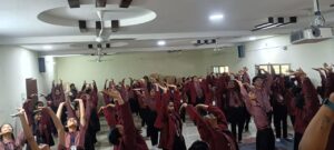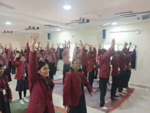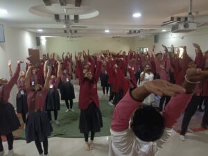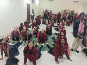 योग गुरु ममता साहू एवं योगाचार्य बिसेन जी, आदित्य टंडन सहज नेचुरोपैथी केंद्र की प्रमुख डॉ निर्मला गुप्ता के द्वारा सूर्य नमस्कार के महत्व की जानकारी दी और सामूहिक सूर्य नमस्कार की शुरुआत 6 सदस्य टीम द्वारा सभागार में उपस्थित 232 छात्र-छात्राओं को सभी 12 क्रियाएं भौतिक रूप से स्वयं एवं छात्रों से करवाई।