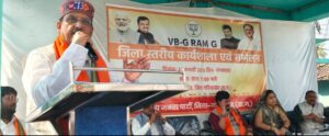 कार्यक्रम को संभाग सहप्रभारी राजीव सिंह जी ने अपने संबोधन में कहा कि ‘वीबी जी राम जी’ को लेकर कहा कि यह रिफॉर्म मनरेगा योजना की वर्षों पुरानी कमियों को दूर करने की दिशा में एक महत्वपूर्ण कदम है। उन्होंने कहा कि केंद्र सरकार गांवों को गरीबी मुक्त और आत्मनिर्भर बनाने के अपने संकल्प को मजबूती से पूरा कर रही है। कहा कि किसी भी अधिनियम की सफलता तभी संभव है जब उसे सही मंशा और पूरी जानकारी के साथ लागू किया जाए। उन्होंने कार्यकर्ताओं से आह्वान किया कि वे सरकार की नीतियों और कानूनों की जानकारी लेकर गांव-गांव तक जागरूकता फैलाएं।